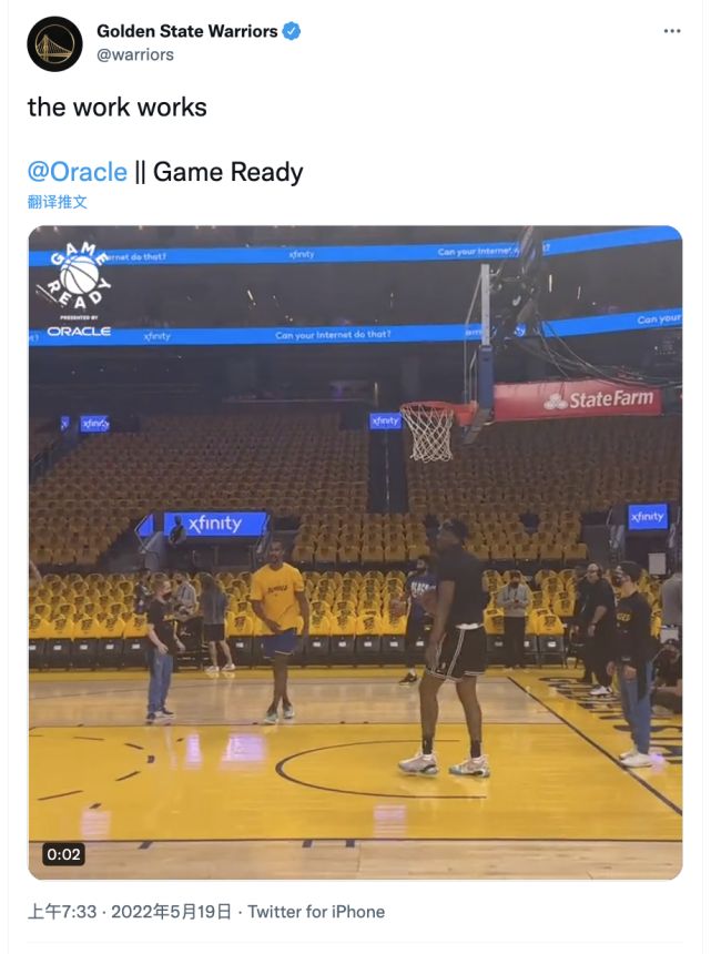 勇士即将在北京时间5月19日迎来对阵独行侠西决系列赛的首场比赛,勇士在经历两年低谷之后终于是重返西决舞台,而在这场比赛之前,勇士官方推特也晒出凯文-卢尼的热身视频: