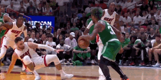 作为绿军的“整活大师”,斯马特在这场比赛中有过绕腰上篮不中的尴尬场面,但他的神仙球也够狠。一次是在负度角出手打成2+1,另一次则是晃倒了斯特鲁斯,轻松中投得分。
