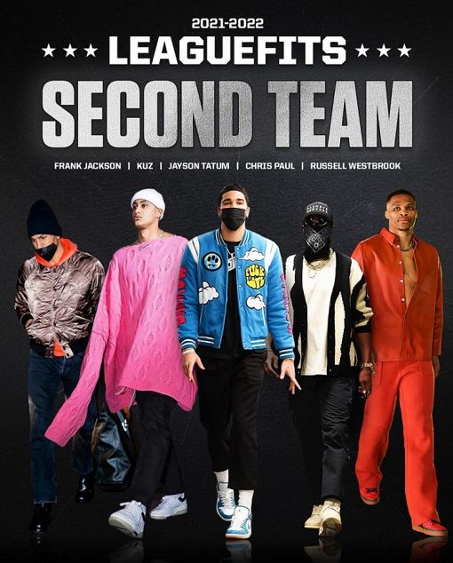 北京时间5月20日,NBA有不少球星是时尚达人,诸如威少与库兹马等,如今美国媒体《灌篮》旗下的时尚频道League Fits,公布本年度的NBA时尚最佳阵容,其中詹娜的现任男友布克,以及两位前任男友拉塞尔与克拉克森等领衔一阵,威少与库兹马仅排在二阵,火箭榜眼格林领衔三阵。