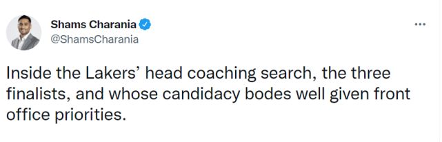 湖人一共面试了六位候选人,除了最终入围的三位,他们还面试了雄鹿助教查尔斯-李、猛龙助教阿德里安-格里芬和前勇士主帅马克-杰克逊。消息人士透露,李和格里芬并没有完全出局。
