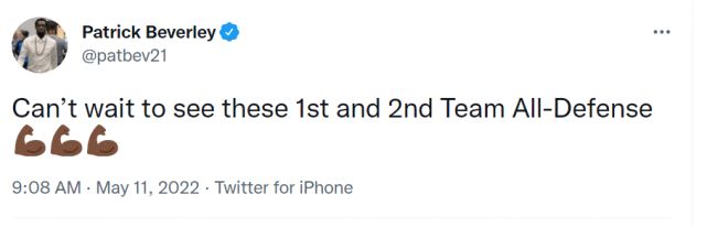 贝弗利之前曾在社媒上表示,自己非常期待最佳防守阵容的揭晓,言下之意,他认为自己是可以入选的,但没想到他还是落选了。