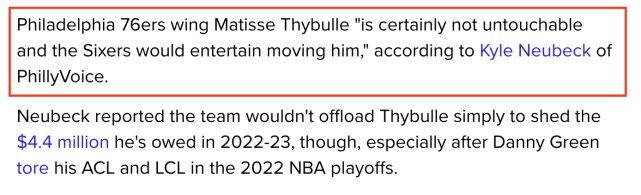 相比起马克西,76人侧翼马蒂斯-塞布尔会是球队愿意摆上货架的那名球员,美媒凯尔-纽贝克在一份报道也透露了这个消息: