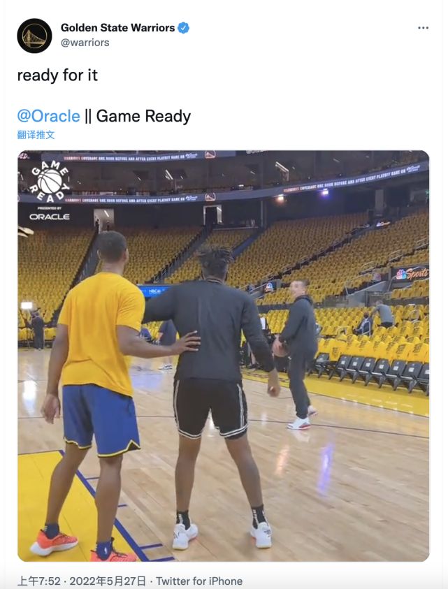 最后需要谈及的是,勇士官方推特晒出凯文-卢尼在对阵独行侠系列赛第5场比赛之前的热身视频:
