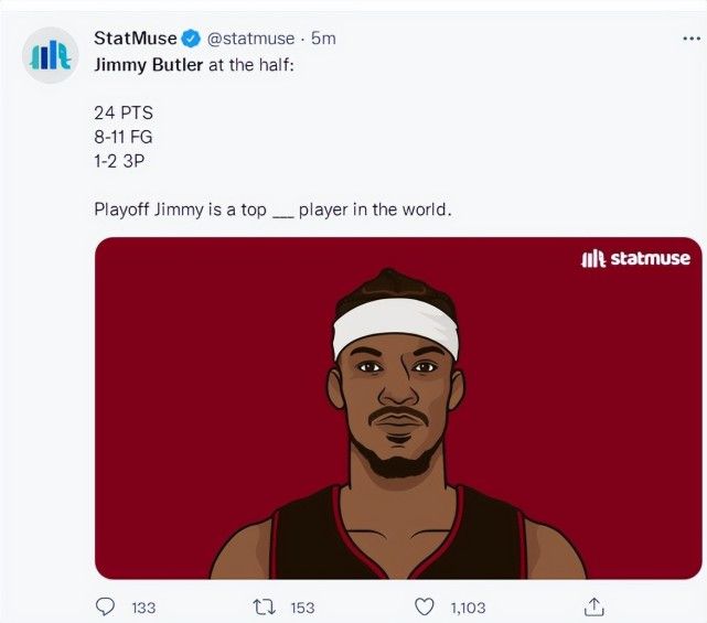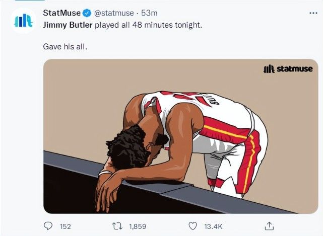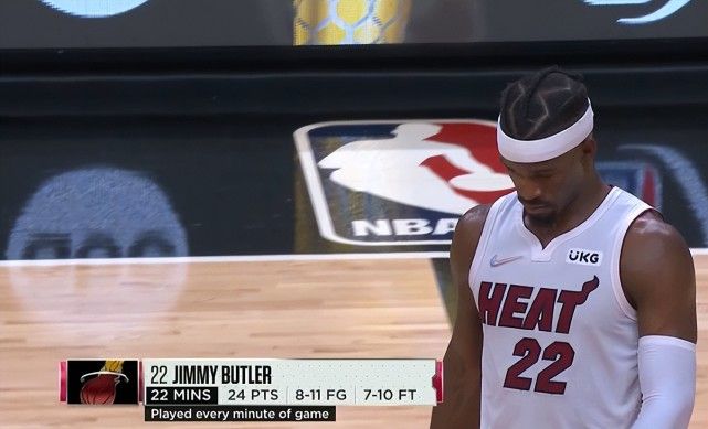 美媒statmuse已经在吹世界最出色的球员是吉米-巴特勒了。第三节的巴特勒开始在场上休息,他依旧一分钟没休息打了36分钟,18中11拿下31分6篮板1助攻1抢断。末节巴特勒只拿下4分,而且终场前16秒错失了反超三分球,这个三分选择也葬送了东决系列赛。