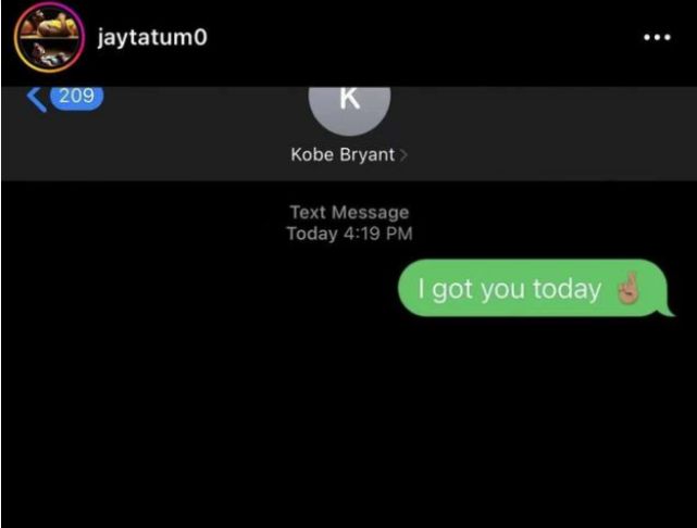 除此之外,塔图姆还晒出了一张截图,即他在赛前给科比发送的短信内容,上面写着“今天我与你同在。”塔图姆做到了,他用曼巴精神激励自己打出优质表现,也是终于率领凯尔特人时隔12年重返总决赛的舞台,而他也将率队去对决库里领军的勇士争冠,以及争夺总决赛MVP的荣誉。