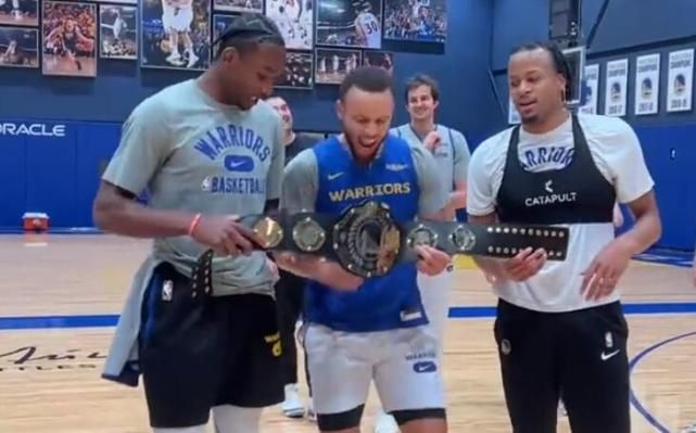 勇士官方晒出了球员们进行投篮比赛的视频,库里所在小组和汤普森所在小组展开竞争,最终的投篮比拼在水花兄弟之间进行。汤普森投丢最后一球,库里稳稳命中,库里兴奋地和同组的库明加、穆迪撞胸庆祝,一起举起投篮金腰带。这是勇士队内的传统项目,用于鼓励球员们提升投篮水准。