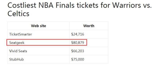 勇士和凯尔特人会师总决赛,让众多NBA球迷充满期待,同时本赛季总决赛的票价大幅提升,疯狂突破了NBA历史均价纪录。