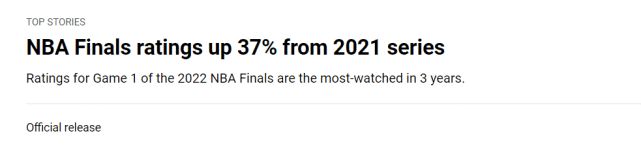 据悉,这场比赛的直播在波士顿当地获得了19.6的收视率,成为自2018年东决抢七后市场收视率最高的NBA比赛。在旧金山当地,G1的收视率达到22.5,成为自2019年总决赛G6后收视率最高的NBA比赛。