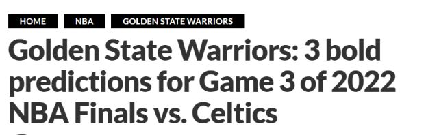 美媒公布总决赛G3预测:库里至少35分克莱回暖!双探花被防到40分以内