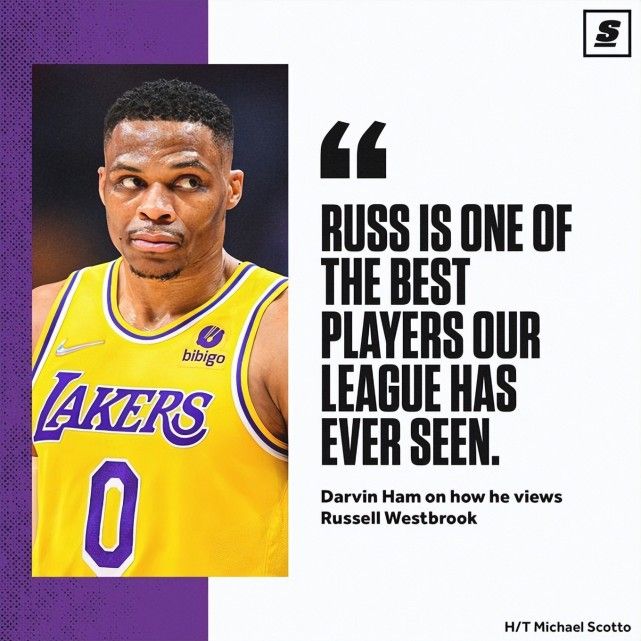 达尔文-哈姆在采访中这样评价威少:Ress是联盟有史以来最伟大的球员之一,他的油箱里还有很多油,我不知道人们为何将他的荣誉一笔勾销。