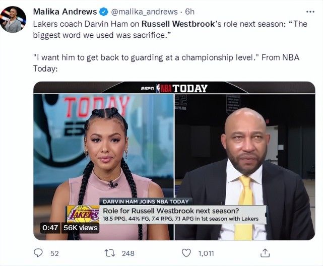 哈姆评价威少的言论也直接登上了全美热搜,美国球迷对哈姆的言论有赞同有批判,一部分的湖人球迷认为威少就是不适合湖人体系,他的到来都让五号位球员霍华德沦为摆设,没有中锋湖人如何重铸防守体系?