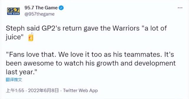 对于小佩顿,库里表示:“球迷喜欢看他打球。作为队友,我们也喜欢。看到他去年的成长和进步真是太棒了。”