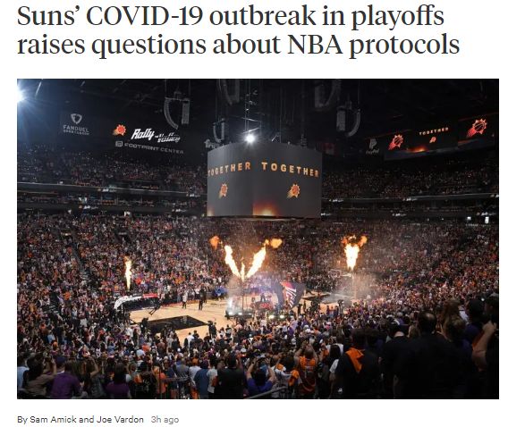 正是由于如此突发事件,导致太阳受到极大的影响,而在赛季结束后,太阳甚至无法在他们的球馆,举行球员和教练之间的赛季总结会议,而是通过Zoom召开全队会议。