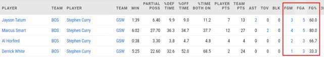 库里的防守真的有贝勒斯所说的那么糟糕吗?NBA官方已经更新了库里G3的对位防守数据。总决赛G3,在库里对位防守下,绿军球员的投篮16中10,命中率62.5%。具体到每一个球员,有4位球员在库里防守下出手,塔图姆5中3,斯马特5中4,霍福德3中2,怀特3中1。