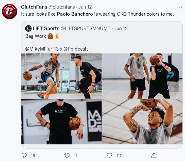 6月12日班切罗的训练图集曝出,他穿的是雷霆训练短裤,这个细节被美媒cltch抓住,这个细节也让火箭队有些扎心。