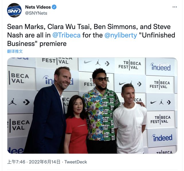 另一方面,据报道篮网总经理肖恩-马克斯、核心球员本-西蒙斯和篮网主教练史蒂夫-纳什出席《Unfinished Business》的首映式: