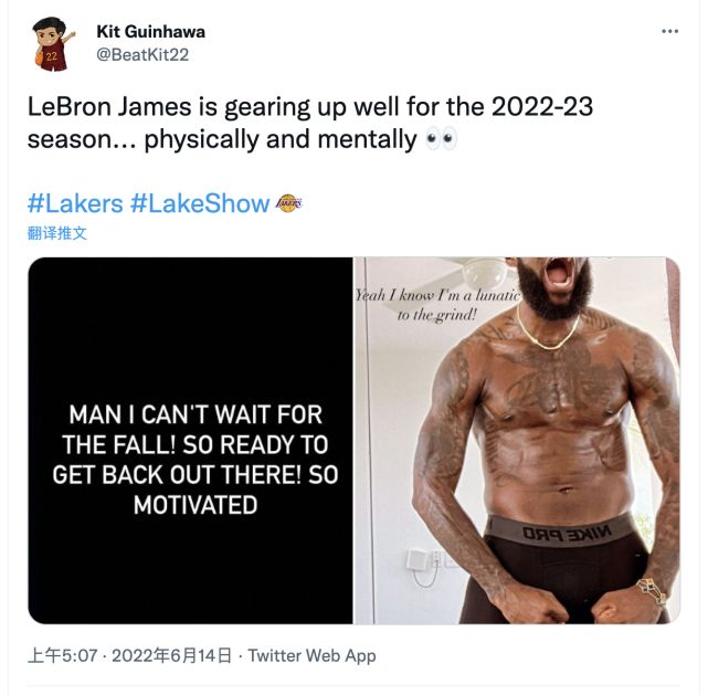 最后需要谈及的是,勒布朗-詹姆斯在社交媒体上明确两件事,这分别是仍会努力提升自己并且冲击总冠军奖杯: