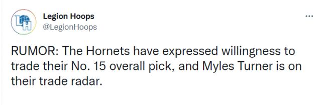 步行者已经重新开始与其他球队讨论有关特纳、布罗格登的交易。黄蜂是特纳的潜在下家,他们愿意交易今年的15号签。正在重建的步行者已经拥有今年的6号签,他们还希望得到其他首轮选秀权。