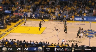 库里在2018年总决赛的G1战,上半场结束前库里命中一记漂亮的超远半场压哨三分,帮助勇士追到56-56平。库里当时命中后,极为兴奋的对着主场观众吐舌激情庆祝,且手指还不断摇摆。