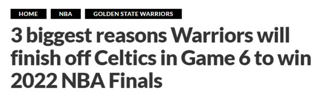 如果凯尔特人要赢得今年的NBA总决赛,那么凯尔特人需要在接下来两场比赛打出非凡的表现,但显然他们没有如此底气,勇士目前的士气正旺难以抵挡。