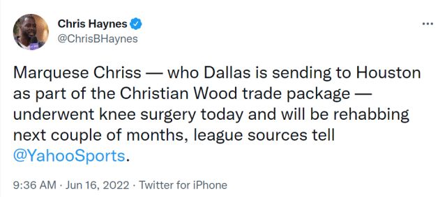 毕竟,火箭和伍德没有谈妥续约合同,伍德也未能给火箭的战力带来质的提升,还影响了潜力股的上场时间。申京在2021-22赛季出战72场比赛,场均20.7分钟,能贡献9.6分5.5篮板2.6助攻。随着伍德的离开,他预计在新赛季打出更好的表现。另据名记海耶斯报道,交易筹码之一的克里斯在今天接受了膝盖手术,预计需要恢复几个月。
