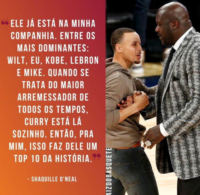 在6月14日时,前nba传奇球星沙奎尔-奥尼尔在ESPN的节目中提到库里的历史排名,奥尼尔表示:库里在我这里已经进入历史前十了。当谈到最具统治力时是我与张伯伦,当谈到历史最佳时是勒布朗、乔丹、科比;当谈到最伟大的投手库里是独一无二的。
