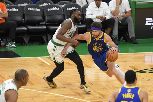 杰伦-布朗在G5一战中受到了诸多质疑,全场18中5+三分5中0,而且总决赛他面对追梦三分球9中1,他的季后赛失误数也仅次于塔图姆是联盟第二,绿凯要想赢下这场生死战布朗是一个关键因素。开场布朗先是中距离开局,随后又命中一个三分球,布朗打破了心魔,面对追梦并不怵。