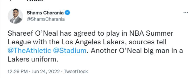 北京时间6月24日,据名记查拉尼亚报道,两位昔日巨星的儿子已经确定加盟湖人。皮蓬的儿子小皮蓬已经和湖人签下双向合同,而奥尼尔的儿子谢里夫-奥尼尔将代表湖人出战夏季联赛。两人都曾经试训湖人。