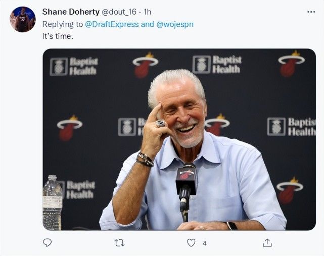 美国球迷直言:帕特莱利时间到了。热火管理层是最擅长在落选秀中淘金的球队没有之一,目前阵容中的马丁、斯特鲁斯、邓肯-罗宾逊、尤尔特塞文、席尔瓦都是落选秀,此前在热火打出名堂的纳恩也是落选秀。