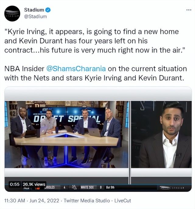 NBA名记查拉尼亚则在节目中提到:杜兰特已经开始严肃考虑与球队的未来,欧文在继续找寻他的新下家,预计欧文会找到新下家,无论是通过执行球员选项交易还是先签后换、跳出合同签约的形式。我们只能静静等待。