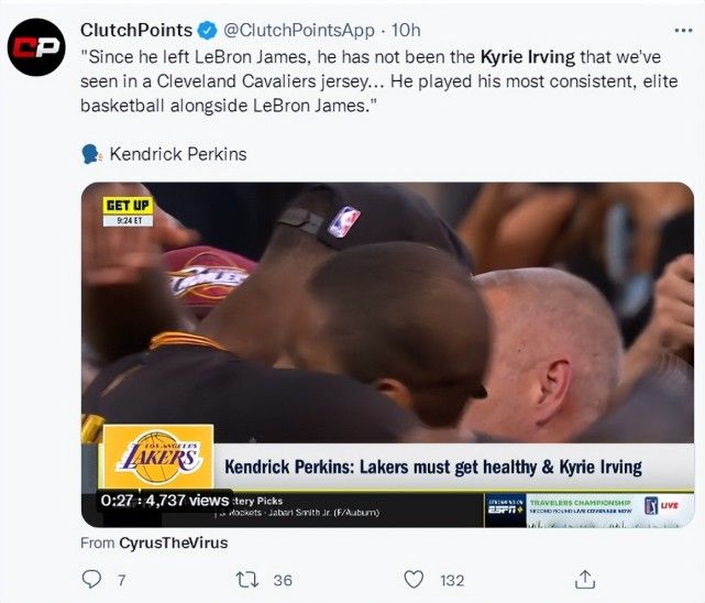 帕金斯认为:自从欧文离开勒布朗,他就再也不是我们看到的那个欧文了,他只有跟勒布朗在一起才能打出精英级的篮球,他应该去湖人。