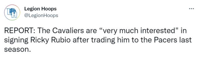 上赛季,骑士曾将卢比奥交易到步行者,他因伤并未替步行者打过比赛。如今他的合同已经到期,将成为自由球员,骑士很有兴趣把他签回来。2021-22赛季,卢比奥出战34场,场均13.1分4.1篮板6.6助攻。