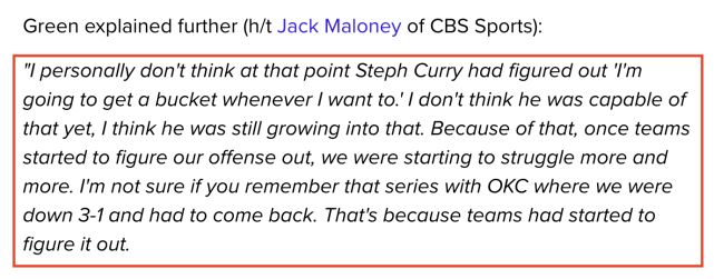 最后格林还豪言勇士会夺下未来4座总冠军奖杯的3座,这绝对是非常大胆的言论,毕竟如果勇士能做到这件事,勇士也将能在库里时代夺下7座总冠军奖杯: