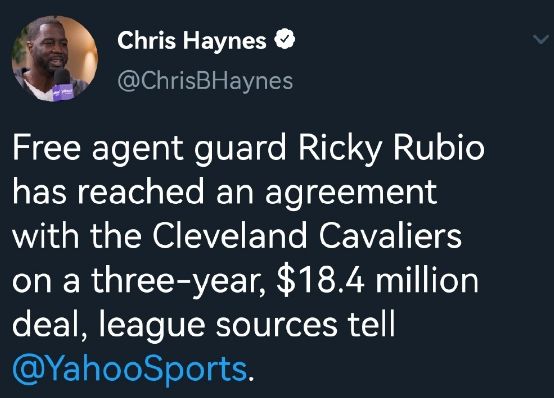 北京时间7月1日,31岁的西班牙老将卢比奥将回归骑士,根据名记Woj与Haynes报道,卢比奥接近3年1840万美金签约骑士,其中最后一年是部分保障。