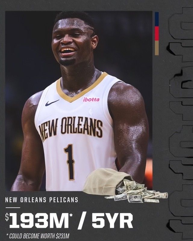 新奥尔良鹈鹕以5年1.93亿提前续约了2019年状元秀锡安-威廉森,这份合同若触发指定顶薪条款会上浮至5年2.31亿,下赛季他只要能入选最佳阵容、MVP、DPOY就能触发指定顶薪条款,这个难度还是很大的。