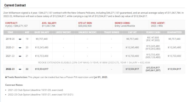 其实对于一个前三年只打了85场比赛的球员来说这些条款一点都不苛刻,锡安三年膝盖接受了两次手术,他能不能健康打完下个赛季真的很难说。