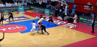 周琦在首节替补登场后,他与孙铭徽的内外线配合极为给力,首节周琦贡献6分2篮板,且3次运动战进球均是接到孙铭徽的妙传命中。在周琦登场不久之后,他就接到孙铭徽的妙传,用一记空接暴扣直接隔扣命中,无疑是极为增长士气的一球。再往后,周琦又是两次接到孙铭徽传球连线,在内线高举高打碾压命中。