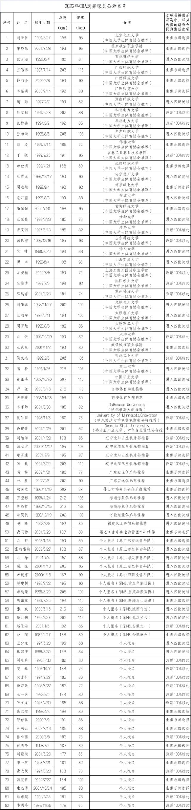 2022年CBA选秀大会最终选秀顺位,具体如下: