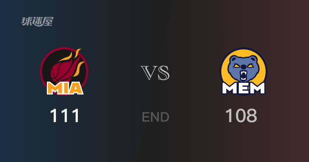全场比赛结束,最终热火以111-108击败灰熊,成为获胜方。热火球员邓罗砍下全队最高29分,外加2篮板、海伍德-海史密斯15分5篮板1助攻1抢断1盖帽、约维奇13分8篮板3助攻1抢断3盖帽,他们是热火队里得分最高的三名球员。