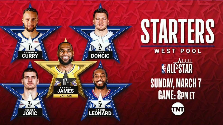 北京时间2021年2月19日,NBA官方公布了2020-21赛季NBA全明星赛西部全明星的首发阵容,詹姆斯成为票王,担任西部全明星队长。