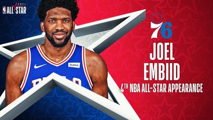 北京时间2月19日讯,NBA官方公布2020-21赛季全明星首发阵容名单。费城76人队球星乔尔-恩比德再次入选全明星东部首发,截止2020-21赛季,恩比德已经四年入选全明星阵容并且都以首发入选。