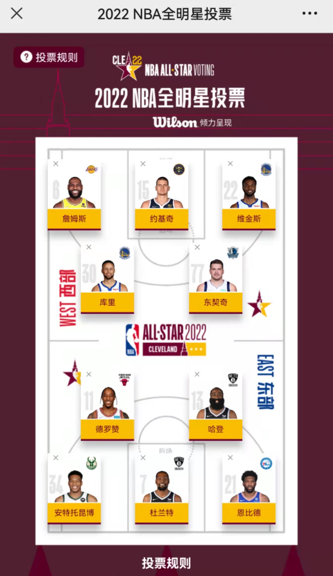 选出你心中的全明星阵容!库里和詹姆斯谁能获得票王?